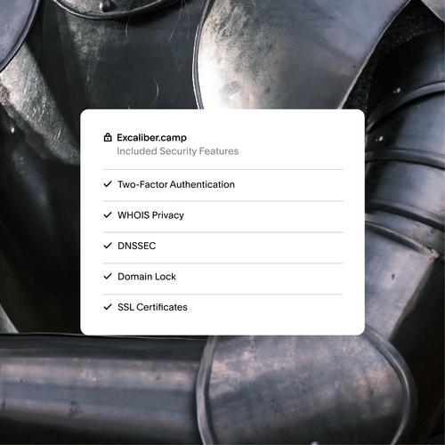End-to-end DNS encryption, two-factor authentication, and WHOIS privacy protection, all included with your domain.